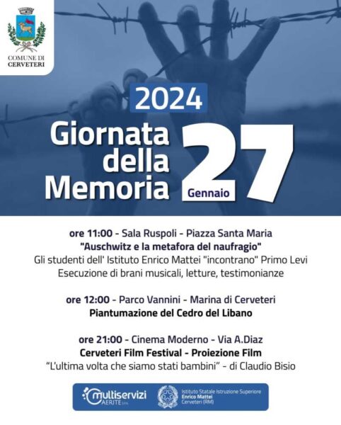 Il programma delle iniziative comincia alle ore 11:00 in Sala Ruspoli, con un’iniziativa organizzata dai ragazzi dell’Istituto Enrico Mattei di Cerveteri. “Auschwitz e la metafora del naufragio”, un momento fatto di brani musicali, letture e testimonianze. A seguire, alle ore 12:00, a Parco Vannini seguirà la piantumazione di un Cedro del Libano, pianta che vuole simboleggiare e lanciare un forte messaggio di pace, unità e fratellanza, valori più che mai fondamentali nella società odierna, caratterizzata ancora da forti contrasti sociali a livello internazionale.