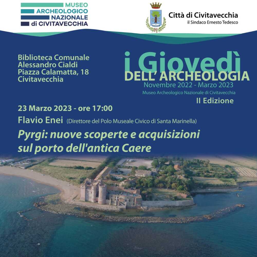 Appuntamento giovedì 23 alle 17 BIBLIOTECA COMUNALE “ALESSANDRO CIALDI” Piazza Calamatta, 18 Civitavecchia (RM) con Flavio Enei (Direttore del Polo Museale Civico di Santa Marinella) che parlerà di “Pyrgi: nuove scoperte e acquisizioni sul porto dell’antica Caere”.