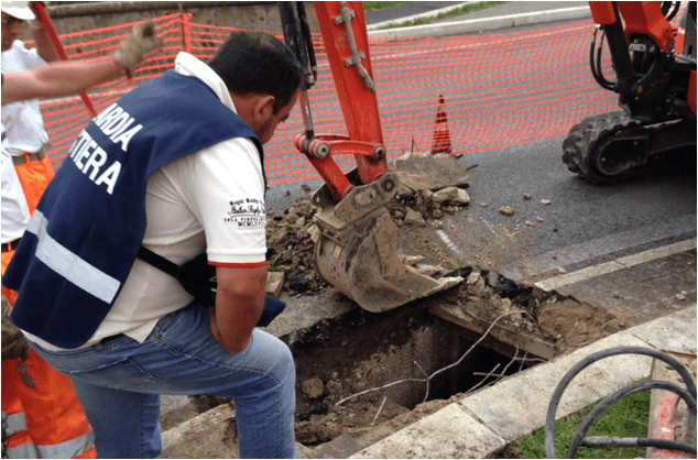 Al termine delle verifiche, effettuate anche con l’utilizzo di un drone teleguidato con videocamera e GPS, indispensabile per visionare le parti sotterranee, si è giunti alla denuncia di sei persone per i reati di abuso ed omissione di atti d’ufficio, falso ideologico, falsità ideologica in atto pubblico e danneggiamento, oltre all’elevazione di 60 verbali amministrativi per scarico non autorizzato ed ingiunzioni per un totale fino a 3.600.000 €.