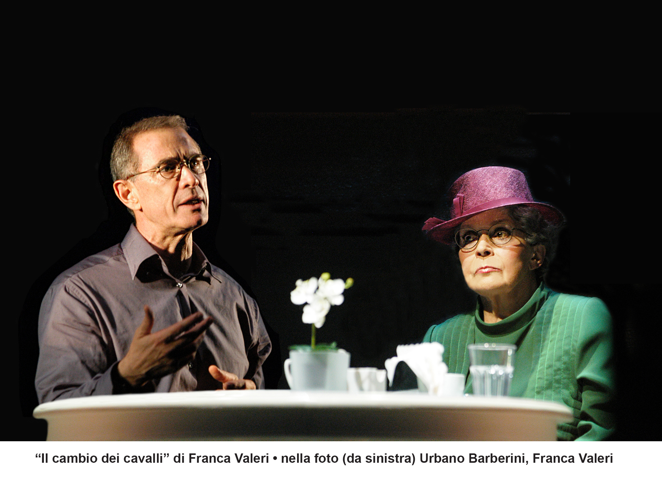 Sarà in scena al Teatro della Cometa dal 17 al 27 settembre 2015 IL CAMBIO DEI CAVALLI. Scritto ed interpretato da Franca Valeri, in scena con Urbano Barberini e con Alice Torriani. La regia è di Giuseppe Marini.