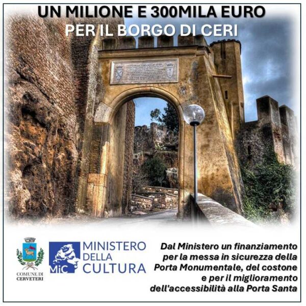 Oltre un milione e trecentomila euro per la messa in sicurezza e restauro della Porta Monumentale del Borgo di Ceri, per la messa in sicurezza del costone che conduce alla Piazza principale del Borgo stesso e per il miglioramento dell’accessibilità alla Porta Santa, abbattendo le barriere architettoniche presenti.
