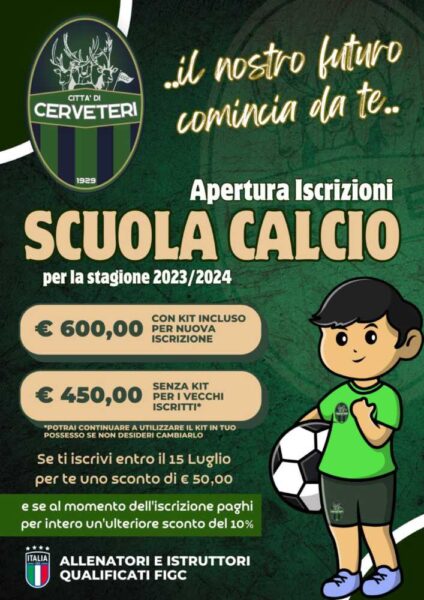 Al Città di Cerveteri sono ufficialmente aperte le iscrizioni della scuola calcio e settore agonistico per la prossima stagione calcistica.
