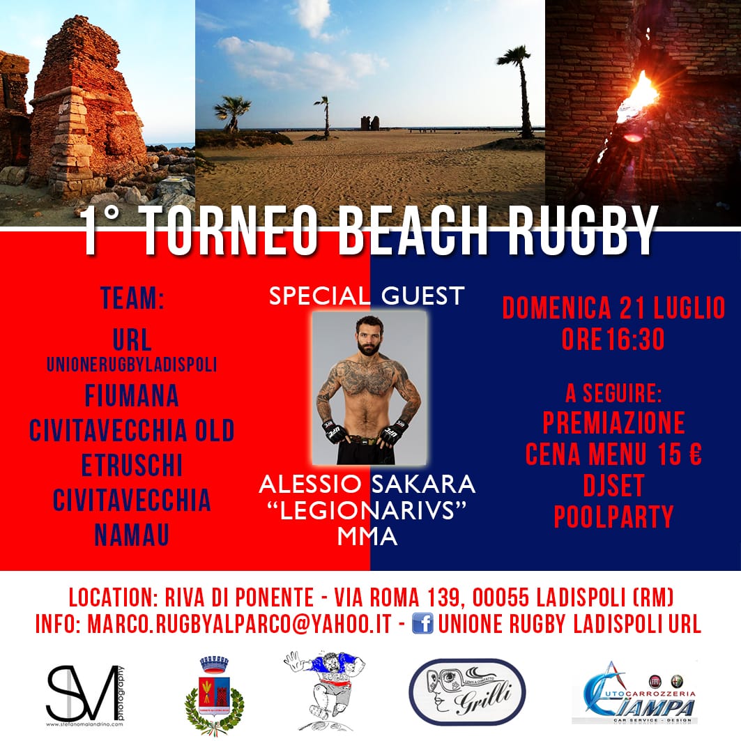 TORNEO_TORRETTADomenica 21 luglio, dalle ore 16.30, presso la spiaggia di Torre Flavia, è in programma il primo Torneo di Beach Rugby di Ladispoli “Torre Flavia”. L’evento, patrocinato dal Comune grazie all’impegno del delegato allo sporto Fabio Ciampa, vedrà la partecipazione una decina di squadre provenienti da tutta la regione, tra cui il Civitavecchia, l’Oriolo ed il Cerveteri.