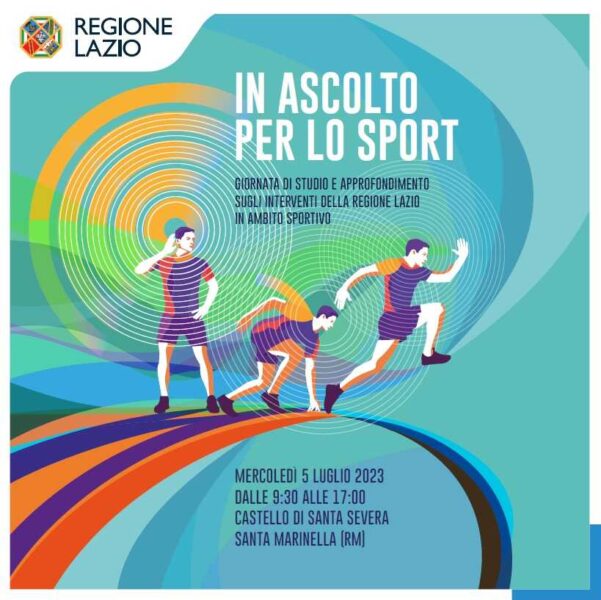 Mercoledì 5 luglio al Castello di Santa Severa si terrà una Giornata di studio e approfondimento sugli interventi in ambito sportivo da titolo In Ascolto per lo sport “Il ruolo delle Regioni nelle Politiche dello Sport”.