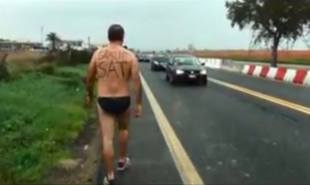Il video della marcia in mutande di Bernardo Podda per contestare la demolizione della sua attività