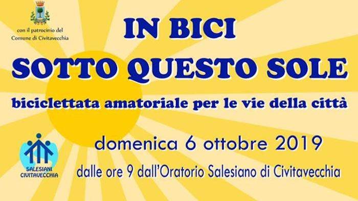 Giunta alla 19^ edizione, domenica 6 ottobre “In Bici Sotto Questo Sole”torna ad animare Civitavecchia ed il Porto. L’evento è organizzato dall’Oratorio Salesiano “Don Bosco” e patrocinato dal Comune di Civitavecchia. “In Bici Sotto Questo Sole”, è una pedalata ecologica ludico-motoria non agonistica aperta a tutti interamente dedicata alla vita all’aria aperta ed alla bicicletta.