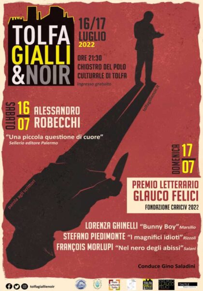 A condurre entrambe le serate, con la sua inimitabile ed inesauribile verve, il poliedrico Gino Saladini, criminologo e autore di romanzi noir. Lui, con i giurati, presenterà, intervisterà e incalzerà i tre scrittori: Lorenza Ghinelli autrice di “Bunny Boy” (Marsilio), François Morlupi che firma “Nel nero degli abissi, Un’indagine per i cinque di Monteverde” (Salani) e Stefano Piedimonte, autore di “I magnifici idioti” (Rizzoli).