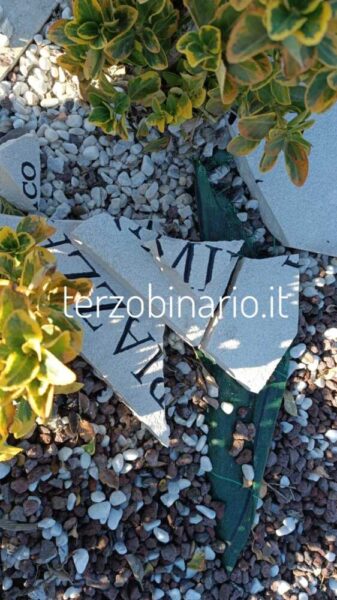 Come già successo in passato, anche stavolta è stata mandata in frantumi la targa toponomastica che indica piazza Almirante a Ladispoli.