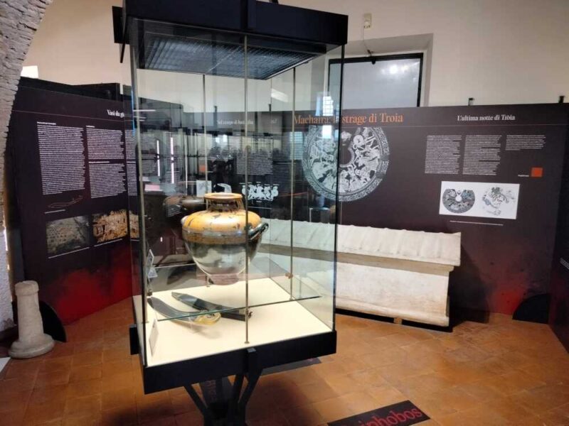 Taglio del nastro pochi minuti fa all’interno del Museo Nazionale Cerite a Cerveteri per “Machaira: la strage di Troia”, una nuova mostra promossa dal Parco Archeologico.