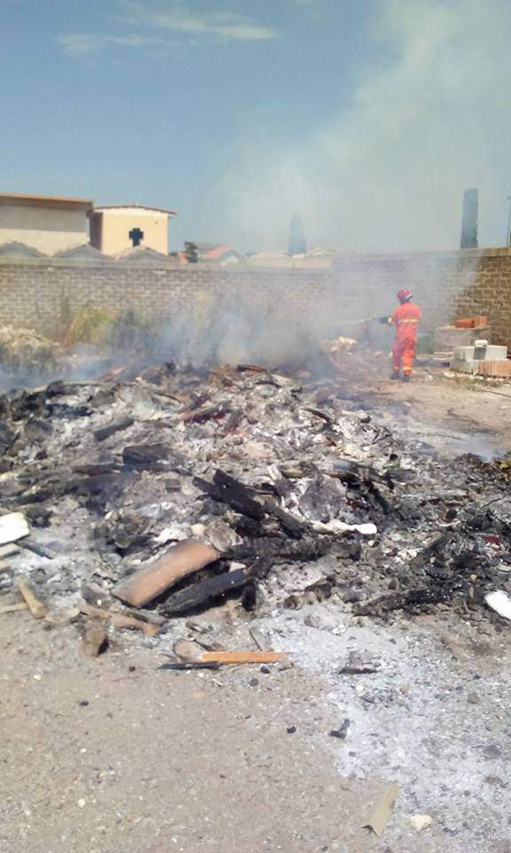 Incendio al cimitero di Ladispoli. In fiamme un cumulo di rifiuti al ridosso del perimetro della struttura.