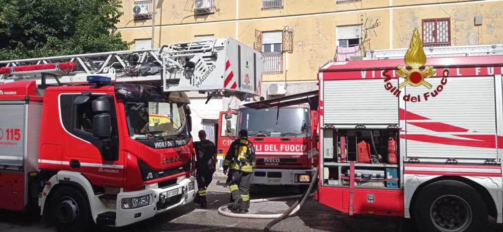Incendio al Quartaccio. Il Comando di Roma è intervenuto dalle 8,56 in via Flaubert, dove le fiamme hanno interessato uno scantinato di un edificio di 4 piani.