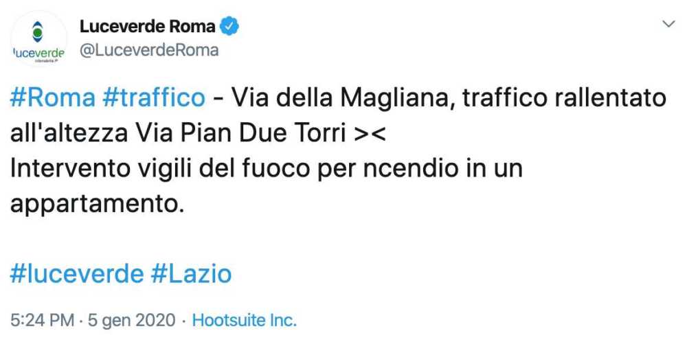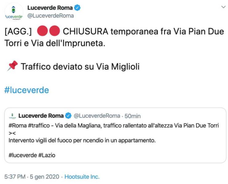 Al momento è stata disposta la chiusura fra via Pian Due Torri e via dell’Impruneta, con traffico deviato su via Miglioli.