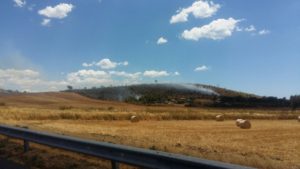 Alte lingue di fuoco si sono alzate dai campi di fieno e grano situati nella zona.