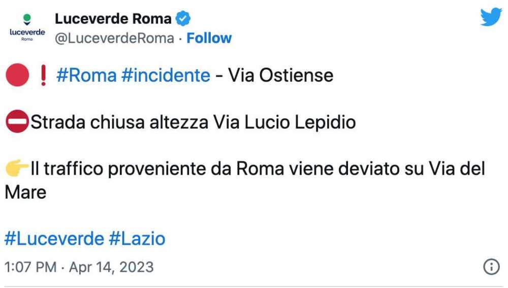 Per gli accertamenti del caso, svolti dalla Polizia del Gruppo X Mare, è stata chiusa via Ostiense all’altezza di via Lucio Lepidio e il traffico proveniente da Roma è stato deviato sulla via del Mare, all’altezza di via delle Canarie.