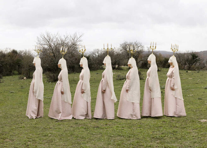 Lo scorso 24 febbraio Valentina Vannicola ha presentato l’intero progetto a Tolfa (Roma) con un evento speciale al Teatro Claudio che ha registrato il tutto esaurito, concepito come una restituzione alla cittadinanza: le campagne di Tolfa sono state il set naturale di molte opere di Valentina Vannicola, tra cui L’Inferno di Dante (2011) e La Processione Mistica, realizzata in collaborazione del Museo Civico Archeologico di Tolfa, dell’Accademia d’alta moda e d’arte del costume Koefia di Roma e con il supporto del Comune di Tolfa. L’evento – moderato dalla docente universitaria e storica dell’arte Benedetta Cestelli Guidi, con ospiti Simona Antonacci, Responsabile Fotografia MAXXI Architettura e Design contemporaneo e Giordano Iacomelli, Direttore del Museo Civico Archeologico di Tolfa – è stato l’occasione per raccontare l’importanza della dimensione partecipativa del lavoro di Vannicola, rivelando quanto possa essere sfaccettata la ricerca sul paesaggio contemporaneo.