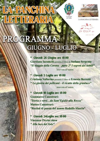 Nella ricca estate tolfetana il calendario del Comune propone, come ormai è tradizione gli appuntamenti della Panchina letteraria, organizzati dal Centro Aps “La Rocca”.