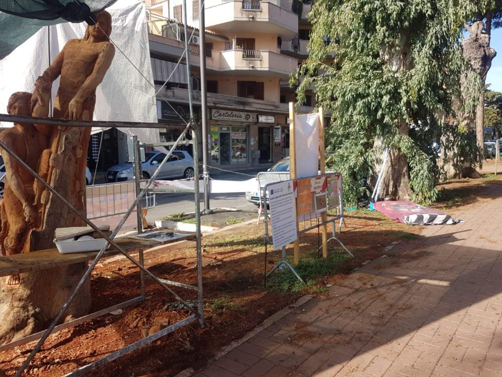 Oggi, mercoledì 16 c.m, lo scultore Napoleon Alberto, ha dovuto liberare l’opera dal materasso ed altri rifiuti ingombranti sistemandoli temporaneamente vicino all’albero adiacente alla scultura per poter proseguire il suo lavoro, e successivamente ha chiamato la ditta Massimi per farli smaltire.