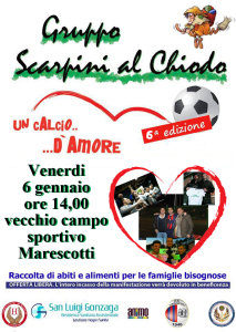 Il consueto evento sportivo di beneficenza organizzato dal Gruppo Scarpini al Chiodo si svolgerà il giorno dell’Epifania al vecchio campo Marescotti (US Ladispoli) a partire dalle ore 14. In questi giorni di festa possiamo aiutare le famiglie del territorio.