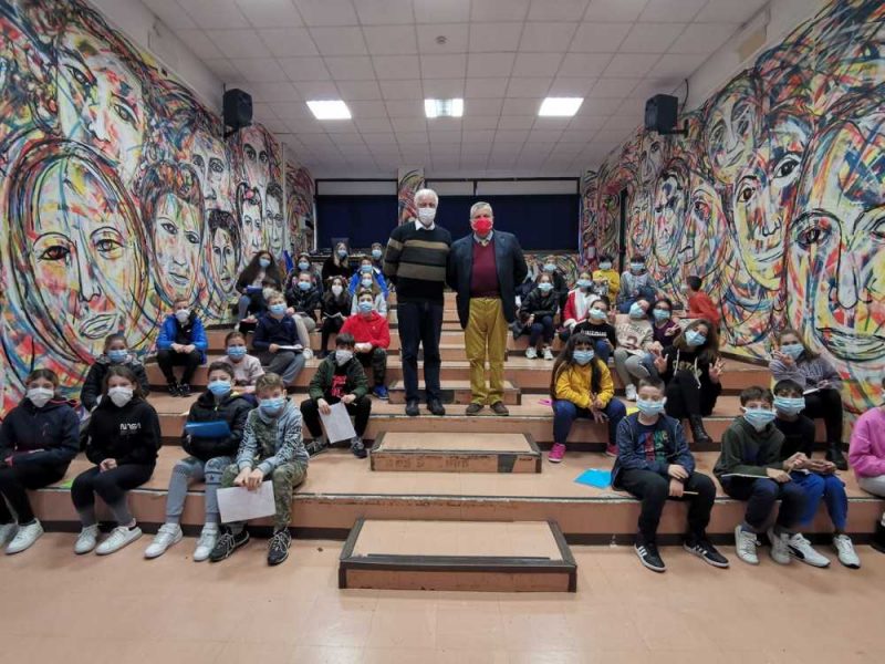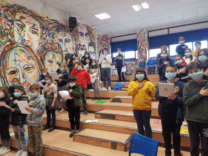 “L’incontro si è tenuto presso la sala Teatro “Massimo Jaboni” della scuola “Corrado Melone” di Ladispoli ed all’evento hanno preso parte gli studenti delle classi 1B e 1E secondaria. Ci ha incuriosito molto il titolo, un po’ bizzarro. di questo interessante incontro… “L’INNO DI MAMMELLI A SQUOLA: SVELTI, RAGAZZI, VENITE AD ASCOLTARE!”. In modo provocatorio, il Maestro Creux ha voluto spiegarci l’origine, il significato e la bellezza del nostro Inno, andando ad eliminare errori o a sfatare luoghi comuni ad esso riferiti e l’ex colonnello Creux ci ha stupito con la sua appassionata conferenza.Il nostro ospite ci ha parlato in modo molto chiaro e anche divertente, catturando la nostra attenzione e allo stesso tempo evidenziando la sua preparazione; ci fatto ascoltare diversi inni nazionali (tra i quali quello americano, quello inglese, quello francese, quello austriaco e quello tedesco) che sono importanti perché racchiudono la storia di un Popolo e di una Nazione, ma che non sono “originali” come lo è il nostro. Infatti il musicista, dopo averci fatto ascoltare i vari inni nazionali, comparandoli tra loro, ci ha meravigliato facendoci ascoltare poi le musiche originali adattate ad inno nazionale.