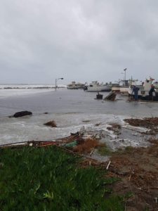 Tanti pescatori presidiano già dall’alba la zona di Porto Pidocchio per monitorale le proprie imbarcazioni, evitando che la corrente possa portarle a mare o danneggiarle sulla spiaggia.