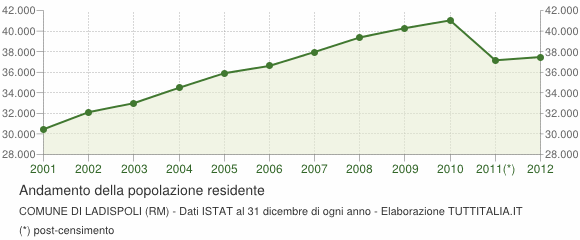 Inversione di tendenza a Ladispoli sul piano demografico. È quanto si evince da una prima lettura dei dati Istat del censimento 2011 incrociati con le verifiche dell’anagrafe. La tanto sbandierata crescita demografica, che ha visto il comune balneare registrare incrementi percentuali tra i più alti d’Italia – con una media di circa 1000 unità in più l’anno – sembrerebbe dunque subire una frenata.