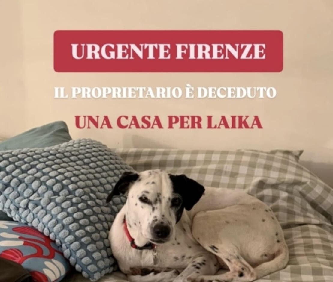 Lei è Laika, il suo padrone è deceduto e lei è rimasta sola. E’ a Firenze. Ha 4 anni, di taglia contenuta, equilibrata. Compatibile con cani e gatti, in casa è bravissima. Per informazioni e adozione Francesca 3358025999 o 3792741379.