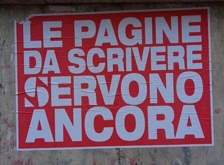 “Le pagine da scrivere servono ancora”. Questo il messaggio apparso a Roma. I manifesti sono stati notati in varie zone della città. Qualcuno ha pensato che fosse una protesta “per l’ambiente… di nuovo?” e chi ammette “io non ho volontà di guardare le immagini, figurati per scrivere”.