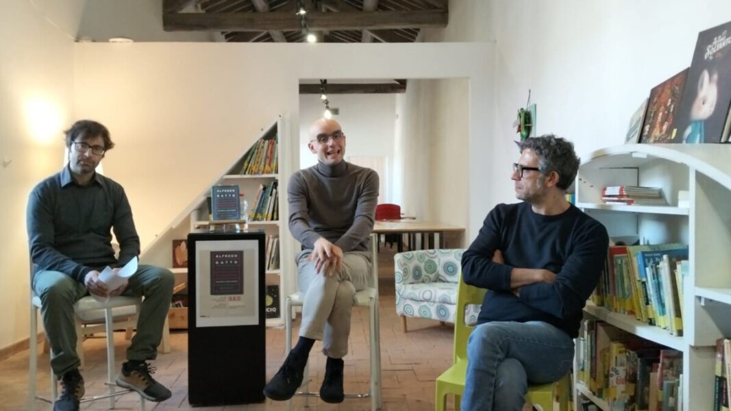 Alfredo Gatto (al centro nella foto, tra Bartolomucci e Ceccarelli), veneto di nascita, vive a Torino con la moglie e i due figli, e insegna Storia delle idee e filosofia della cultura, Storia della filosofia e Storia della filosofia moderna all’Università Vita-Salute San Raffaele di Milano. E’ stato ricercatore all’Universidade de São Paulo e all’Institut Catholique de Toulouse. Ha pubblicato “C’era una volta la verità. Da Socrate a Judith Butler” (ombre corte, 2024). Al momento sta già lavorando ad un nuovo libro.