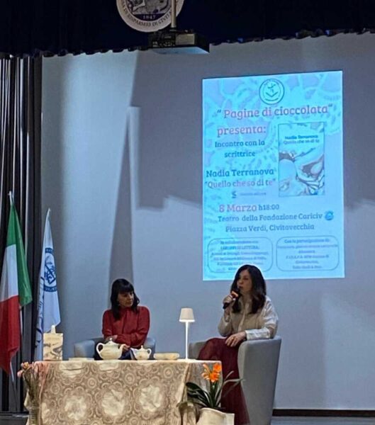 La formula dell’incontro, introdotto da Caterina Battilocchio e portato avanti da Annalisa Concetti seduta sul palco con l’autrice, prevedeva una serie di interventi. Ci sono state le riflessioni fatte dai portavoce dei due premi letterari così come quelle del laboratorio tenuto nella Fidapa Civitavecchia e poi una serie di domande scelte fra le tante che erano state proposte dai gruppi di lettura coinvolti: Pagine di Cioccolata, Attenti ai Dettagli, Libreria Giunti e Cosamileggi di Civitavecchia ed Equilibri della biblioteca di Santa Marinella e InChiostro della biblioteca di Tolfa.