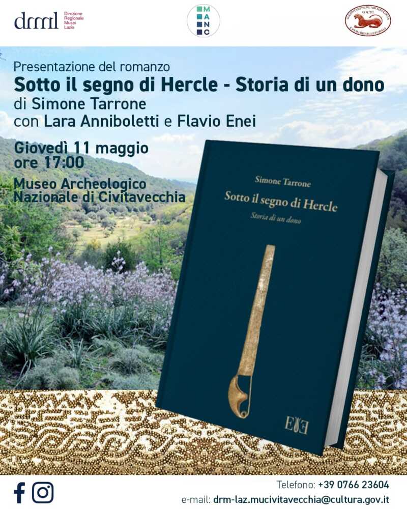 Giovedì 11 maggio alle ore 17 al Museo Archeologico di Civitavecchia ci sarà la presentazione del romanzo “Sotto il segno di Hercle. Storia di un dono” con Simone Tarrone (autore), Flavio Enei e Lara Anniboletti (Direttrice del MANC)
