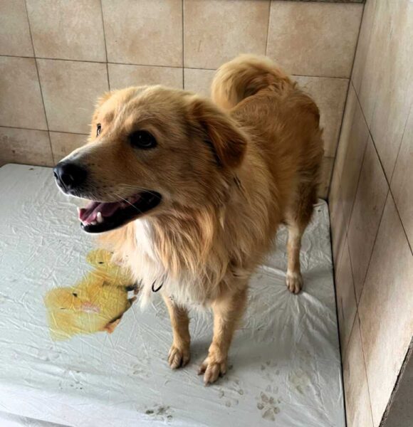 Arrivato giustamente spaventato, ha capito di essere al sicuro e ha iniziato a giocare e socializzare con i volontari.