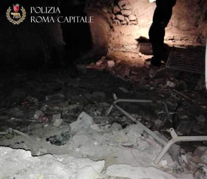 Si sono calati nelle botole con una scala a pioli improvvisata, raggiungendo i sotterranei della zona di fontana di Trevi, dove passa l’acquedotto dell’Acqua vergine: così gli agenti della Polizia Locale di Roma Capitale hanno scoperto un’area colma di materiale di cantiere.