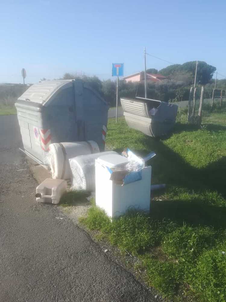 Intanto a Pescia Romana da settimane quei cassonetti in foto stanno così, per non parlare della situazione a Montalto Marina.