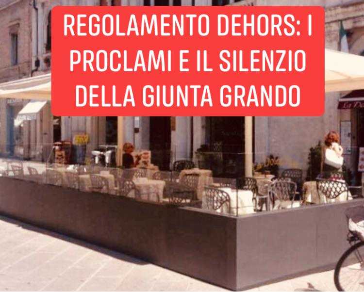 “Era il mese di novembre del 2017 quando il sindaco Grando annunciava a tutti che avrebbe messo mano ai dehors, strutture in vetro/legno/metallo fuori dai bar e dalle attività di ristorazione, perché privi di regolamento.