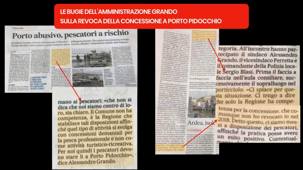 Quindi, per fare chiarezza, dietro la revoca della concessione di Porto Pidocchio, ci sono responsabilità certe, che vanno ben oltre le ipocrisie. Chi ha scelto la strada della revoca anziché quella del dialogo con gli enti preposti per trovare una soluzione a una vicenda di certo annosa ma che tutte le passate amministrazioni (da un trentennio a questa parte) hanno comunque gestito, ha un nome e un cognome. È un elenco di cinque persone, che potete leggere tra gli allegati, trattandosi di una delibera (dunque di un atto pubblico e pubblicato).