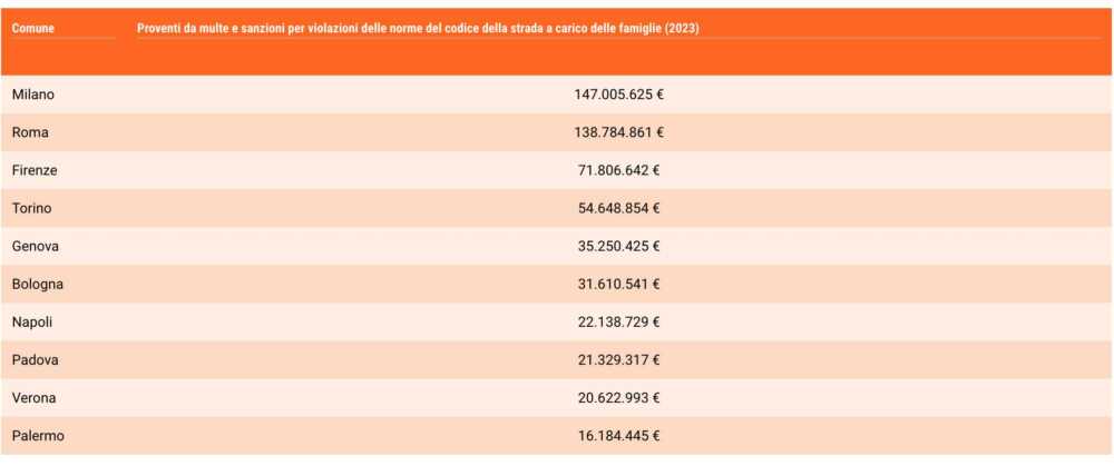 Per la cronaca, a seguire troviamo Genova (35,2 milioni di euro), Bologna (31,6 milioni), Napoli (22,1 milioni), Padova (21,3 milioni) e Verona (20,6 milioni). Secondo quanto indicato nell’analisi, nel 2023 Comuni italiani hanno incassato oltre 1,5 miliardi di euro provenienti da sanzioni per violazioni delle norme del Codice della Strada a carico delle famiglie.