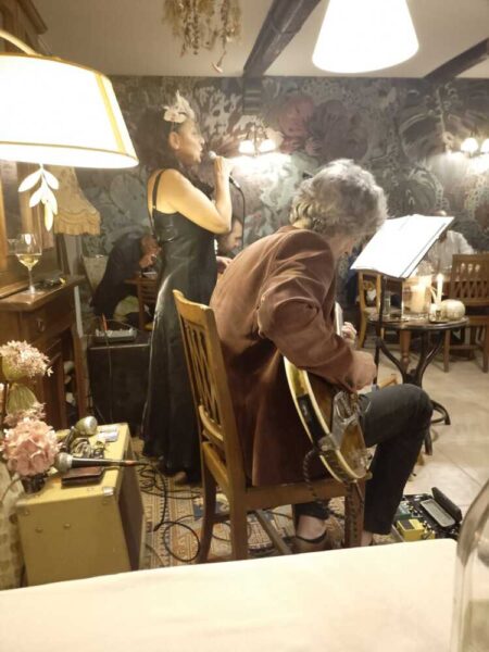 Come ha raccontato Gioia, l’incontro del “Salotto” con il trio è stato davvero originale. “Con Albert mi vedo spesso portando a spasso i nostri cani ad Oriolo, dove viviamo, e parlando ho saputo che era un musicista. Daniela un giorno si è affacciata al locale proponendosi, dato che noi ospitiamo eventi – ha spiegato l’altra sera -. Solo in un secondo momento ho saputo che del gruppo faceva parte anche Albert: evidentemente era destino che si esibissero qui!”.