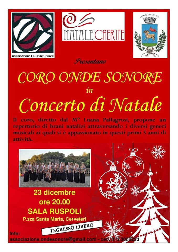 Martedì 23 dicembre alle 17.30 a Case Grifoni si terrà la conferenza a cura del Dott. Benedetto Spadaro ‘Arte tecnologia e Cromoterapia’. Alle 20.00 a Sala Ruspoli concerto del Coro ‘Onde Sonore’.