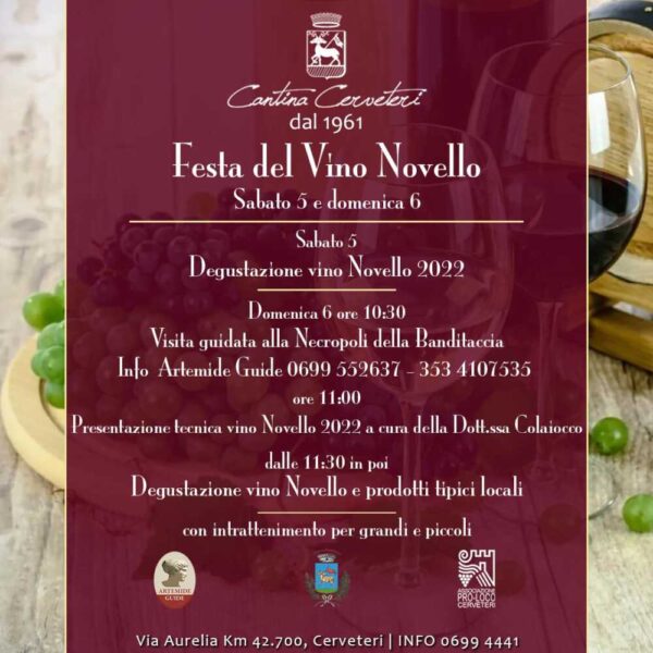 Dopo due anni torna a Cerveteri la tanto attesa Festa del Vino Novello della Cantina Cerveteri, che per sabato 5 e domenica 6 novembre, nella sede di via Fontana Morella ospiterà centinaia di persone.