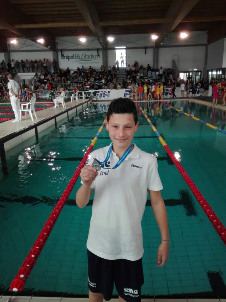 Soddisfazione per il settore giovanile della SNC Civitavecchia per la prestazione maiuscola di Gabriele Saladini, che ieri ha vinto la medaglia d argento sui 100 rana con il tempo di 1.28 ai campionati regionali di nuoto categoria esordienti B, svolti il 7/8 aprile presso la piscina capitolina di Pietralata. Ottima anche la prova di Daniel Ceccarelli che sui 200 stile libero ha registrato sabato un tempo di 2.42 migliorando di ben 5 secondi il suo miglior crono stagionale: era la sua prima finale e conquista l’ottava posizione.