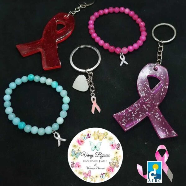 Per il mese di ottobre, ha realizzato una serie di braccialetti e portachiavi cui parte del ricavato verrà devoluto alle attività di AIRC – Fondazione per la Ricerca sul Cancro.