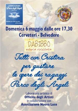 E cosi’ domenica 6 maggio a Cerveteri, in occasione dei festeggiamenti del Santo Patrono, oltre ai suoi aperitivi sarà possibile “degustare” le opere dei nostri ragazzi, sempre supportati anche dagli amici dell’Associazione Nuova Luce che non perdono occasione per essere loro vicini.