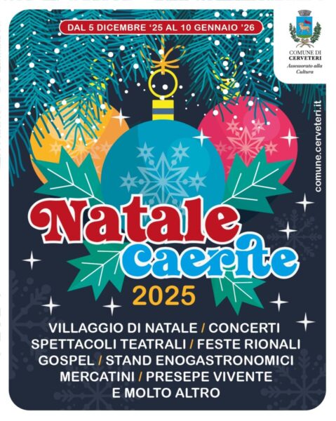 “Un cartellone di iniziative sul quale abbiamo lavorato molto, per offrire alla città un’offerta culturale di qualità e interesse – ha dichiarato Francesca Cennerilli, Assessore alla Cultura del Comune di Cerveteri – un Natale che come tradizione inizierà con la Festa dell’Olio Nuovo, organizzata dall’Associazione 3.0 e dall’Assessorato alle Politiche Agricole e con la Festa della Pizzetta Fritta del Rione Madonna dei Canneti. Proseguiremo poi con concerti e spettacoli teatrali, e tra i tanti evidenzio con piacere quelli della rassegna CaereMusica, l’evento ‘Boccaccio in Scena’, i concerti a lume di candela de Le Capinere e le grandi serate Gospel, fino ai consueti appuntamenti con il Gruppo Bandistico Cerite, la ‘Befana Cerveterana’ e il ‘Presepe Vivente’”.