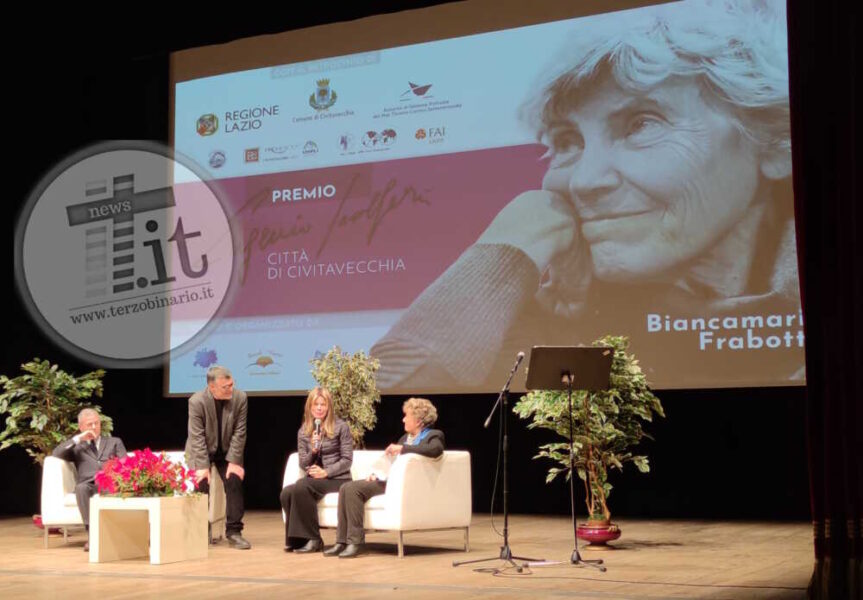 La giuria, ha detto Mauro, ha accolto all’unanimità l’indicazione della Maraini, scegliendo di assegnare il premio dedicato a Biancamaria Frabotta, scomparsa quest’anno, poetessa legata anche lei a Civitavecchia, ad Antonella Anedda. La quale ha dialogato con Saladini e la Maraini, leggendo poi una sua composizione. La poetessa Maria Grazia Calandrone, allieva della Frabotta, ha raccontato la sua figura come docente e come amica, leggendone poi dei versi. Ad interpretare una lunghissima poesia dedicata proprio dalla Frabotta a Civitavecchia, di cui elenca personaggi e luoghi, è stato l’attore, pure civitavecchiese, Pino Quartullo. Vera Improta, compagna di liceo e amica della Frabotta, ha infine letto la sua poesa “Mio marito ha un cuore generoso”, e il marito Brunello Tirozzi è stato quindi chiamato sul palco.
