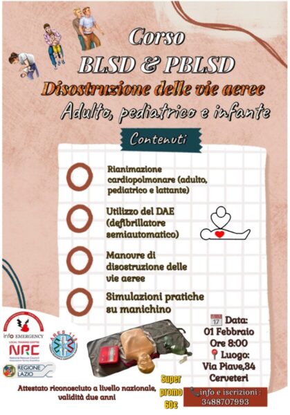 Poche manovre per salvare una vita: nuovo corso Blsd e Pblsd a Cerveteri