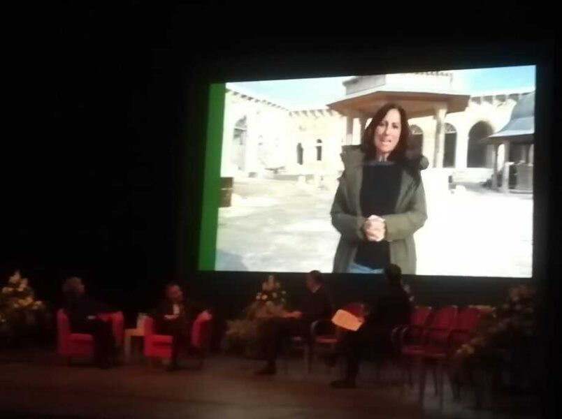A quest’ultimo il compito di leggere la motivazione della prima menzione d’onore andata all’inviata Rai Lucia Goracci, per il suo impegno costante in zone di guerra, anche in rappresentanza di tutti i corrispondenti. Infatti, la Goracci è stata presente in video, grazie a un bellissimo messaggio di ringraziamento, girato nella moschea di Aleppo, col sottofondo di canti e suoni.