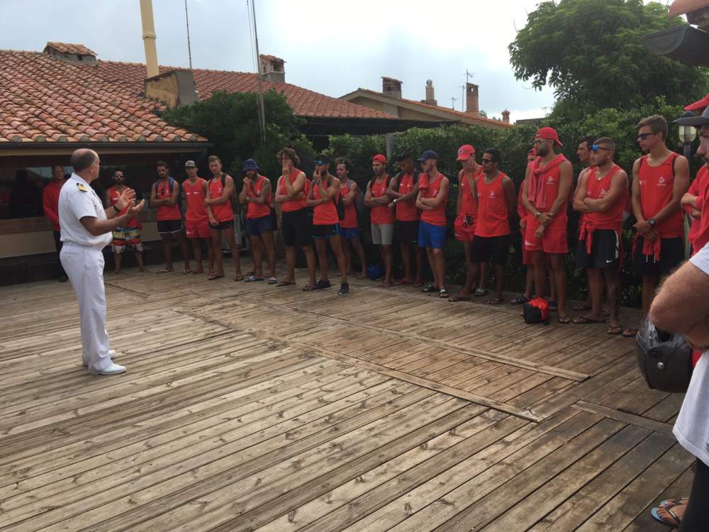 Il Comandante Leone ha voluto conoscere di persona gli operatori del progetto mostrando sensibilità relazionale con i giovani professionisti del salvataggio e con i loro coordinatori della Subsystem Sea, Noah srl e Dolphin, discutendo della logistica del Piano e delle sue modalità di esecuzione.