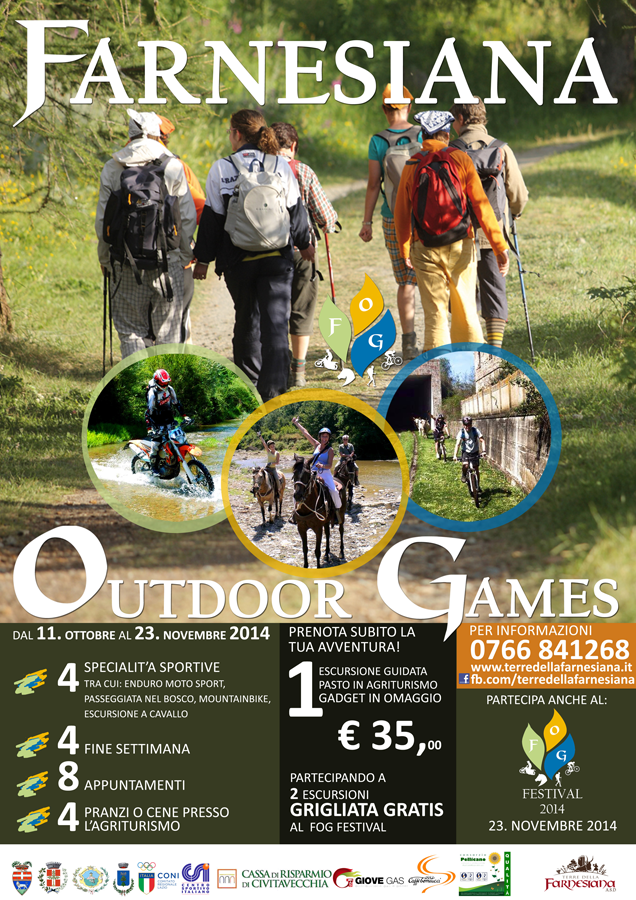 Il progetto inizierà con la prima edizione del “FOG” Farnesiana Outdoor Games 2014, cinque appuntamenti dedicati agli appassionati degli sport all’aria aperta che si svolgeranno sul territorio della Farnesiana.