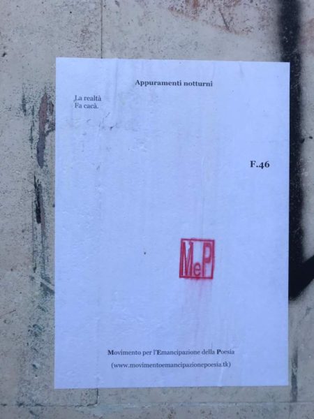 Fino al testo ‘Appuramenti notturni’, in cui è sintetizzato un certo malessere quotidiano: “La realtà fa cacà”.