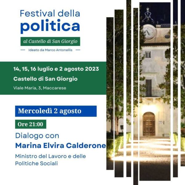 Ospite della kermesse politica, che nelle scorse settimane ha avuto un parterre ricco di figure di spicco del giornalismo e della politica, sarà Marina Elvira Calderone, Ministro del Lavoro e delle Politiche Sociali.
